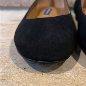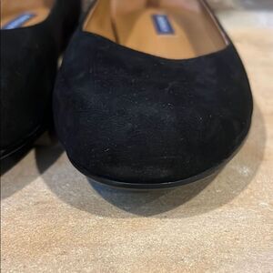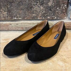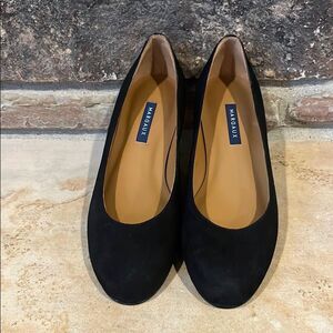 Margaux The Classic elegant black suede ballet flats. Perfect for any occasion, these shoes offer both comfort and sophistication. High quality black suede upper. Handmade in Spain. Small rub mark on the left toe. New with tags. Most items ship next business day.