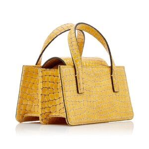 Marge Sherwood Gold Pebbled Croc Print Accordion Mini Handled Purse