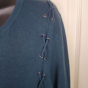 Excellent like new condition. Women's plus size Margeaux & Ellie asymmetric hem lace up lightweight sweater size 1x.