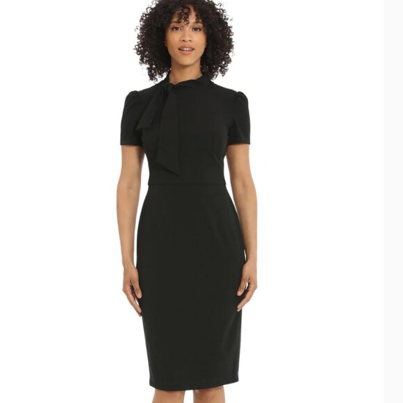Margo Midi Short Sleeve Dress Navy Blue with Necktie. Size 14