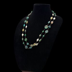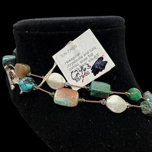 Margo Morrison Hex Chrysocolla & Turq Combo, Silv Flat Bead Swar SS 53” Necklace
