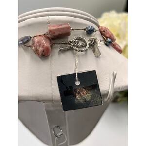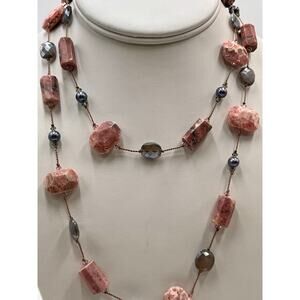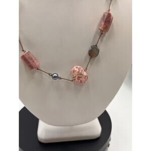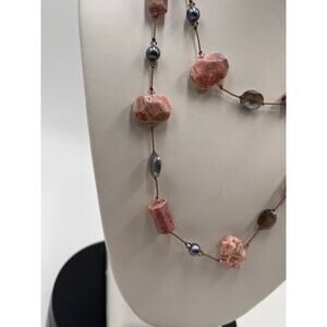 Margo Morrison Rhodochrosite Grey Coated Moonstone and Pearl Crystal Necklace