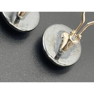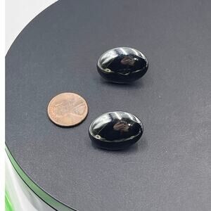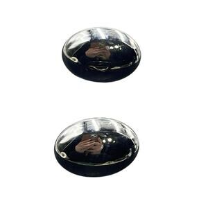 Margo Morrison Shiny Black Smooth Cabochon Button Sterling Silver Clip Earrings