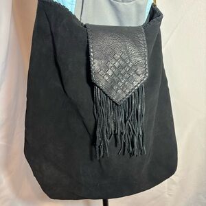 Margot Black Fringe Suede Shoulder Hobo Bag