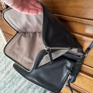 Sleek and stylish black leather crossbody bag for men. Perfect for everyday use with a modern design. Some piling inside main compartment see photos great condition not perfect