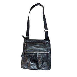 Margot Black Soft Leather Crossbody Bag Nylon Strap Grunge Classic Punk