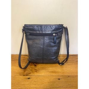 Margot Dark Charcoal Grey Genuine Leather Cross Body Bag Purse.