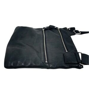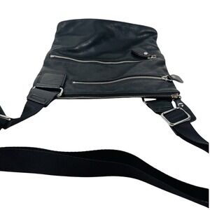 Margot Genuine Leather Black Crossbody Bag Purse Adjustable Strap 2 Zip Pockets