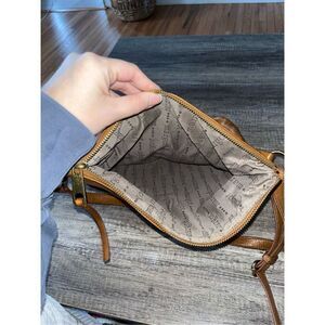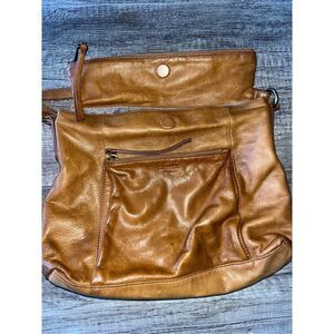 Margot Genuine Leather Foldover Hobo Handbag Crossbody Brown