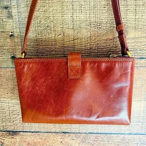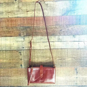 Margot New York Genuine Leather Cognac Multipocket Crossbody Bag