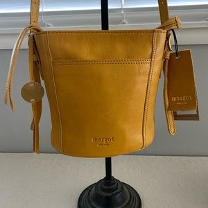 🆕Margot New York🔥 Mustard Yellow Iris Bucket Leather shoulder Purse