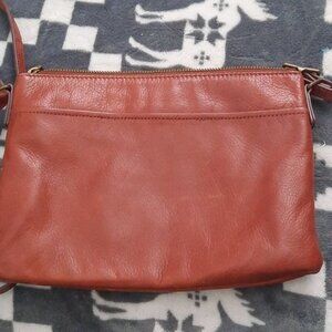 Margot Soft Brown Leather Crossbody Handbag. Front zipper pocket. Back open pocket. 1 inside zipper pocket & 1 open pocket. No flaws. 10 inches across. 7 inches high. 1/2 inch deep. Questions and offers welcome.
