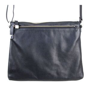 Margot BLACK GENUINE LEATHER ZIP POCKETS SHOULDER BAG X-BODY MESSENGER HANDBAG PURSE