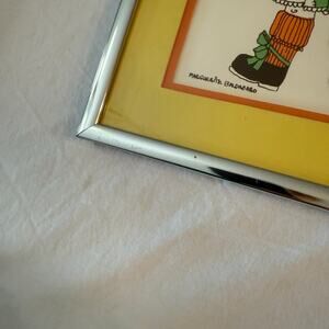 Preowned. There are scratches on the frames, most notable marks are shown in closeup photos. Lower right corner of glass with orange mat has a small crack but not separated yet