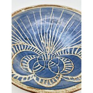 Marguerite Rost Studio Ceramic Bowl California MCM Sgrafitto Blue Starburst Sun