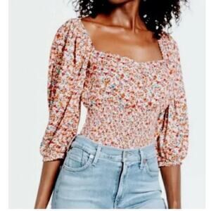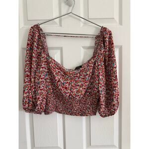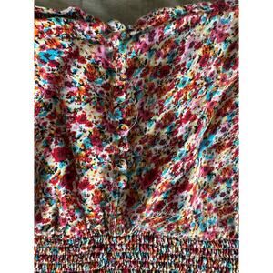 Mari Floral Smocked Blouse size XL Red flowers Nordstrom AFMR flowered top
