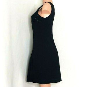 MariAnna Size 4 Little Black Dress Beaded Bodice Pleats Sleeveless Empire Waist