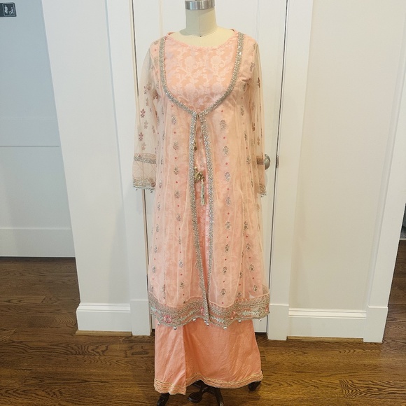 Maria B. Light Peach Girls 12-14 2 Piece Jamavar & Net Suit