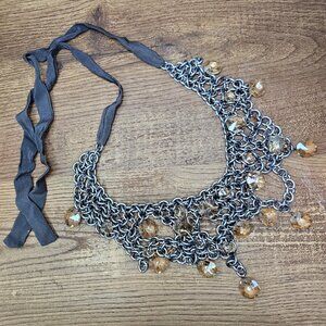 Maria Calderara Asymmetrical Chainmail & Crystals Adjustable Closure Necklace