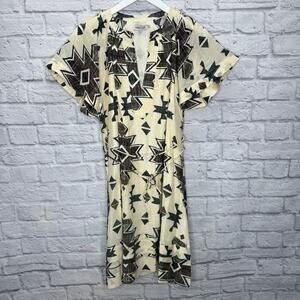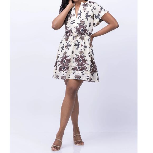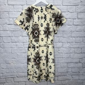 Maria Cher Formosa Carol Short Dress Mix 1 Cream Green Size L Aztec Tie Belt