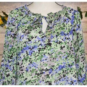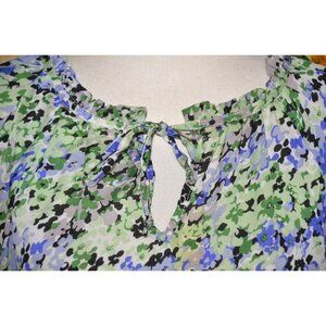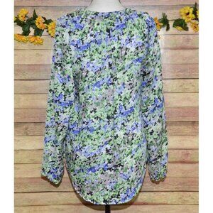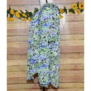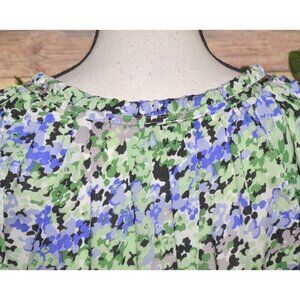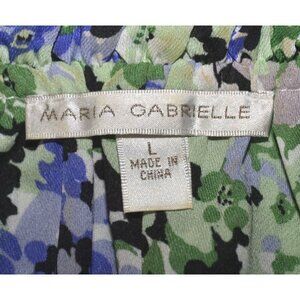 Maria Gabrielle Ladies Green Floral Blouse Top Size L Pleated Lightweight