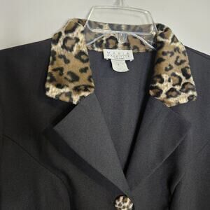 Maria Gabrielle NY Long Blazer Jacket Leopard Collar Buttons Business Jr 11-12