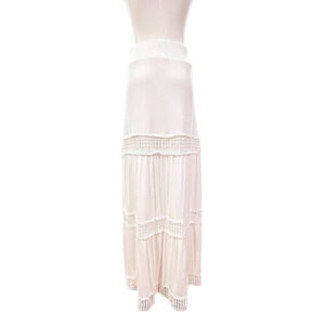 Maria Gabrielle White Crochet Lace Cut Out Pull On Maxi Skirt Large Boho Peasant