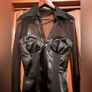 Maria Grazia black bustier corset blouse with rhinestone buttons & accents 42