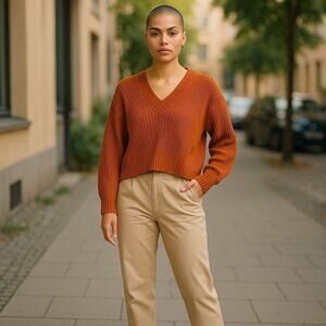 Maria Knit Sweater Burnt Orange V-Neck Pullover XS S M XL