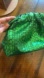 Hand-woven laminated fabric clutch in a gorgeous metallic green with a cross-body aluminum chain strap. Tags inside the bag.