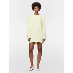 This mini dress from Maria McManus is absolutely stunning and beautifully made. If you have long legs, it's a mini. If not (like me), it's a short dress, LOL. Crafted from MM's proprietary silky FSC-certified viscose twill, the cut and tailoring are next level. and it drapes like a dream. Hem is rounded and longer in the back to cover your assets. Long sleeve, tunic mini dress has a deep box pleat detail at the back for a cocoon like fit. The dress hits the mid thigh at approximately 34" from the high point shoulder to the bottom of the dress. The "Lemon Ice" color is a stunning light green/yellow. Wear this to a formal event or for an evening out; or even over leggings or tights. 101 ways to style this amazing dress. Brand new with tags. $990 Retail.