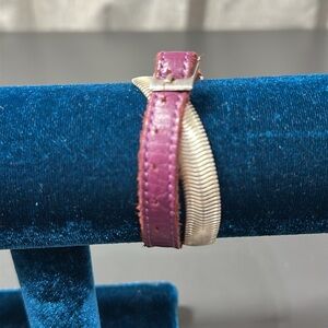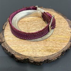 Maria Rivolta. Vintage wrap bracelet. Plum purple genuine leather with silver snake chain. Buckle style closure. Measures 15" total length. Used. Good condition. Argentina.
