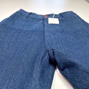 Design/Style: High rise, wide leg, crop length, zip with button closure, low stretch.