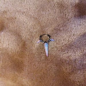 Elegant earrings with opalescent stones. Silver accents enhance the design. Perfect for any occasion.