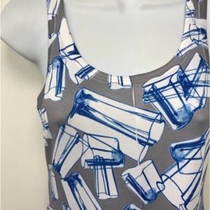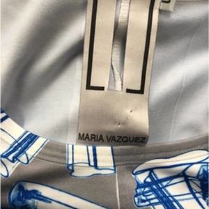 Maria Vazquez Blue Printed Sleeveless Shift Dress S