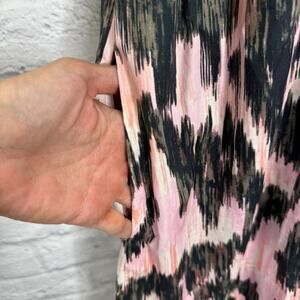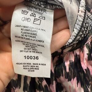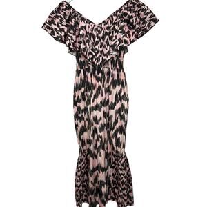 MariaCher Dabir Cotton Ruffle Trim V Neck Smocked Midi Dress Size S Pink Black