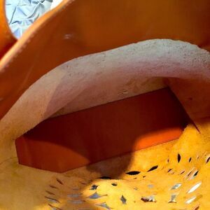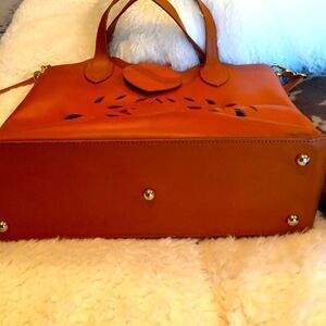 Maria Donato designed dark tan leather handbag. Thus handbag comes from Spain in perfect condition used only a couple of times. Maria Donato is a high end designer handbag manufacturer. Look up on their website. Their hand tooled leather pieces are timeless. This handbag can be used with the leather red interior bag or you cane use as two separate bags when out shopping because the leather bag has handles for you to carry items purchased in bag.