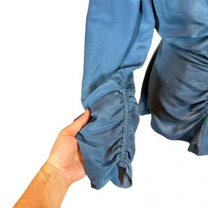 Mariacher Maria Cher Olite Rosario Silk Ruched Short Long Sleeve Mini Dress Blue