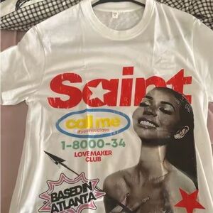 Mariah the scientist SAINT Graphic White T-Shirt with Red and Black Accents