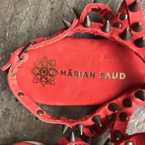 Marian Saud cherry red leather and metal studded ankle-strap gladiator sandals