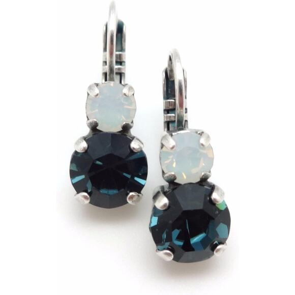 Mariana Mood Indigo Silvertone Earrings Dark Blue with White Crystals 1069 NWT