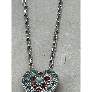 Mariana charm chain necklace handmade crystal green heart hand fish 19 READ NEW