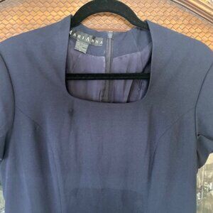 This dress is elegance for any occasion. It is dry clean only - size 8. Maxi dress has left side slit with buttons for elegance and the rounded neckline makes it a classic. The closeup pictures distort the actual color of the dress but wanted you to see the details