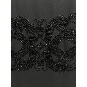 This Marianna Vintage Black Short Sleeve Beaded Evening Cocktail Dress, size 4, is the perfect blend of sophistication and style. Made from polyester, the dress features intricate beadwork design that adds a touch of glamour. Short sleeve, knee length, sheath silhouette. Excellent preowned condition!