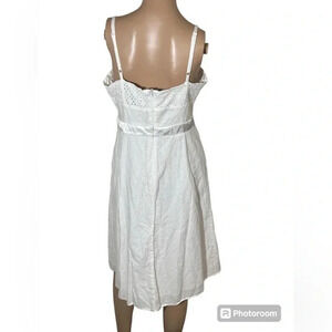 Marianne Linen Blend White Eyelet 1/2 Zip Fully Lined Dress Size 10 EUC!!