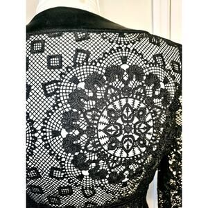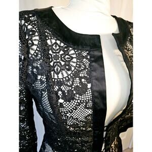 Elevate your wardrobe with this exquisite Mariano lace dress jacket/blazer in a rare size 4. The sheer black lace fabric exudes elegance and the 3/4 sleeves with no button add a touch of sophistication to any occasion including weddings, parties, and business events.