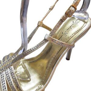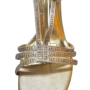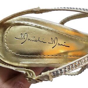 Marichi Mani Gold Rhinestone V-Strap Slingback Formal Heels Sz 7.5