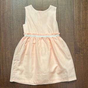 Charming apricot sleeveless dress with ruffle detail. Perfect for special occasions.