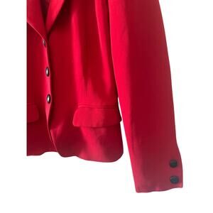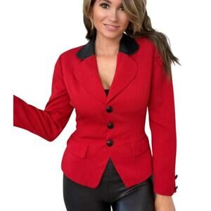 Marie Clair Fiala Women Vintage Classic Red Button Front Blazer Leather Collar