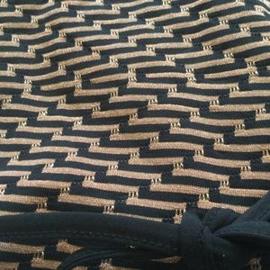 “A casual dress with a sparkly graphic print and an elegant ribbon at the waist.”